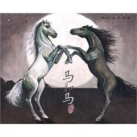 太阳刚刚升起时,这户人家的两匹母马几乎是在同时生下了两匹小马驹,一匹黑色,一匹白色。……