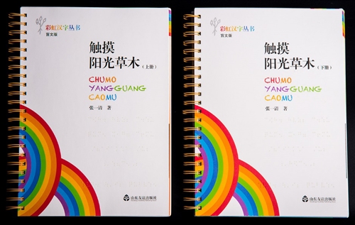 《彩虹汉字丛书》(盲文版)第一辑《触摸阳光草木》分上下两册,讲述了生活和自然中常见的10个汉字背后的来源和知识,为全方位地关照盲人的触摸和听觉特点,以帮助盲人更顺畅地阅读和理解内容为出发点,在书中相应位置插入配套音频,特邀中央电视台著名主播梁艳录制,使盲人既可以方便地学习书中内容,还能享受专业诵读创造的意境,激发阅读的想象力。