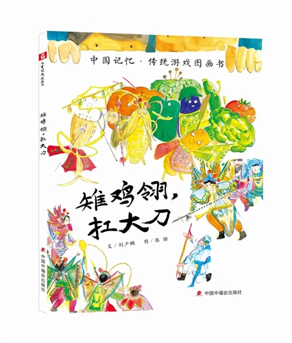 《雉鸡翎,扛大刀》是“中国记忆?传统游戏图画书”系列的第一本。这本图画书主要介绍了三个和古代战争故事有关的儿童游戏“点兵点将”“雉鸡翎扛大刀”“城门城门几丈高”。故事通过小夏和厨师寻找丢失的娃娃戏表演服和出逃的蔬菜、水果为线索,将这几个游戏的玩法生动有趣地予以展现,让蔬菜、水果、小动物和人一起玩游戏,营造了热闹有趣的游戏气氛。