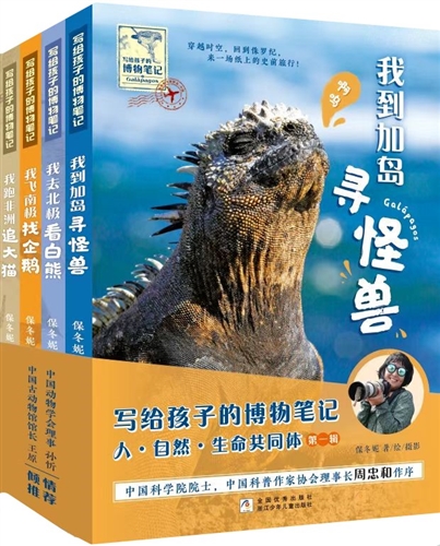 这套少儿科普图书共有4册,均由儿童文学作家保冬妮一人完成撰写、摄影、绘画。作家行走世界,三次进入非洲,远行中美洲、南美洲,涉足地球的冰雪两极,探寻野生动物的踪迹,观察地球生态,拍摄了大量野生动物和植物的照片,并将观察到的点点滴滴用文字记录下来,结合自己拍摄的精美摄影作品和后期亲手绘制的童趣图画,为读者呈现了一部融合在纸上的“纪录大片”。作家旅行考察的这些地方都相当特殊,非一般人所能到达。书中用大量第一手的珍贵资料(照片、影像)为读者还原了真实的北极、南极、非洲大陆以及南美洲加拉帕戈斯群岛。除了各种野生动植物的讲解外,书中还介绍了这些地方的历史、地质地貌演变过程、风土人情等等。作家保冬妮用真诚的眼睛看世界,也用充满情感的笔描绘世界。她的文字亲切、风趣、幽默,书中描写的内容包含科学、哲学、历史等多个方面,充满了大自然的纯美与精致,也展示了生命世界的无限可能。