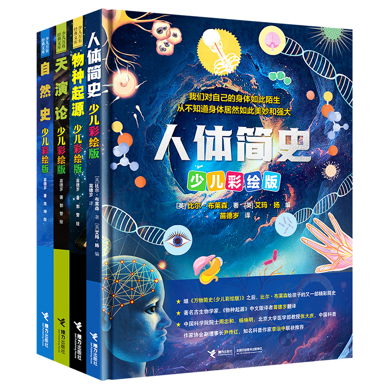 苗德岁给孩子的生命故事系列:人体简史+物种起源+天演论+自然史(少儿彩绘版)(套装共4册)