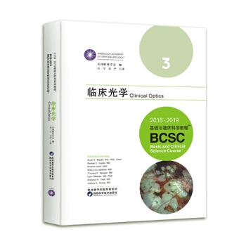 “2018-2019基础与临床科学教程”《临床光学》由美国眼科学会(AA0)组织编写,是国际眼科联盟(WOC)和中国医学考试网推荐图书,是国家医学考试的ICO考试点的第二步必考书。本书从视光理论知识和临床实践需求的角度,详尽介绍了从基础光学知识到临床眼科中所能遇到的光学、屈光以及接触镜、人工晶体、屈光手术等各类问题,每章内容均配有大量清晰的图片、视频、练习题,讲解形式丰富,有助于眼科医生构建完整的、系统的、多学科融合的视光学知识架构。《临床光学》(双语版)的出版不仅会帮助读者开拓视野,提升临床技能和专业英语水平;也有助于视光学专业人才的教育与培养;更会推动我国眼科与视光行业的发展,为更快更好地解决我国乃至世界眼健康问题提供有力的帮助。