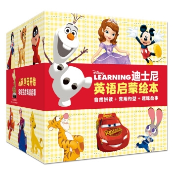 全套书共77个原版故事,包含32条自然拼读规则、54个生活常用句型、120张游戏卡。全书包含冰雪奇缘、疯狂动物城、赛车总动员、海底总动员、玩具总动员、超人总动员、迪士尼公主等二十余个个广受孩子喜爱的迪士尼动画品牌,适合3~7岁幼儿英语启蒙使用。