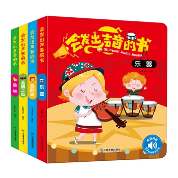 “会发出声音的书”系列共四本分册,囊括“动物”“乐器”“我的家”“交通工具”四大主题,每册书中介绍了19种常见的事物形象,包括它们的外观图案、中英文名称、发出的声音等等,并精心配备了动听的儿歌,从视觉、听觉角度为宝宝打造“阅读盛宴”。