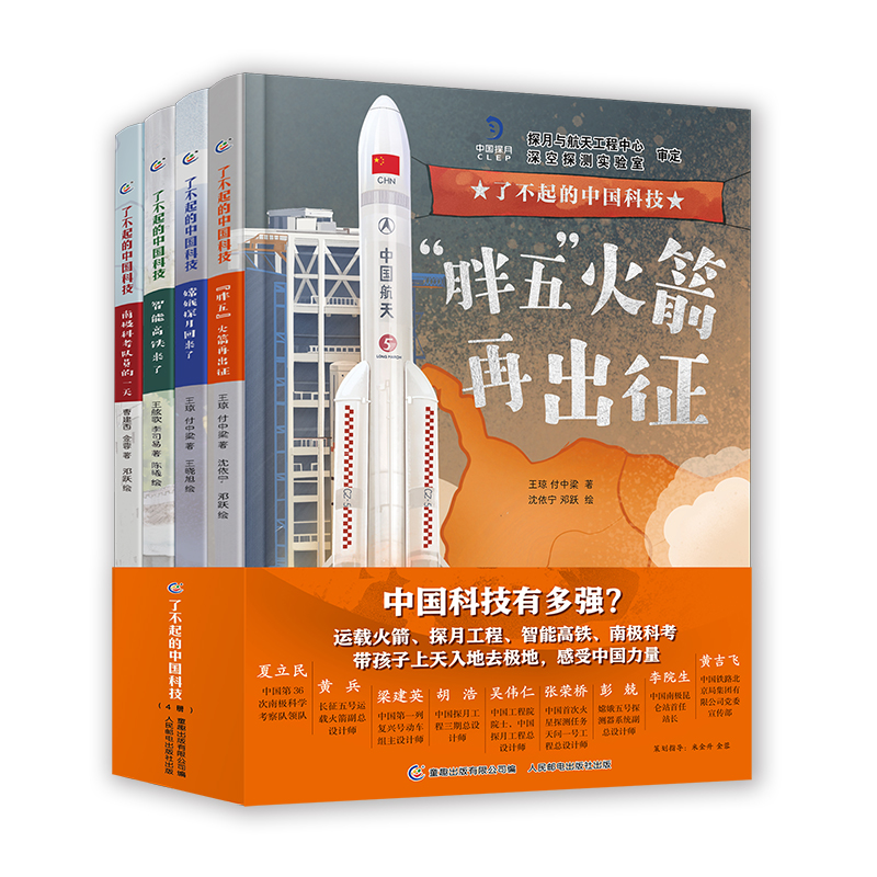 这套绘本围绕运载火箭、探月工程、京张高铁、南极科考,通过图画故事书的形式,巧妙地把一线科技工作者的真实事迹和科技知识结合起来,带儿童上天入地去极地,了解中国科技有多强。