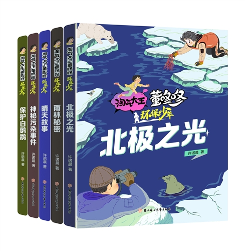 《淘气大王董咚咚·环保少年》共包含五分册,每一分册紧扣一个环保的主题:《保护白鹦鹉》围绕孩子与鹦鹉的相遇,在一个个小故事中,向读者展示了生物的多样性、生物的珍稀与面临的危机,同时发出了“人类的欢乐建立在动物的痛苦之中”的深痛感叹;《神秘污染事件》使读者懂得水的价值、水的污染与危害,并唤醒读者对我国成为贫水国家的危机意识;《雨林秘密》围绕热带雨林,向读者展示了热带雨林的价值、珍贵树木的种类与面临的危机;《晴天故事》告知读者什么是雾霾、雾霾的危害、如何与雾霾决战等;《北极之光》向读者展示了北极那童话般动人心魄的美。
