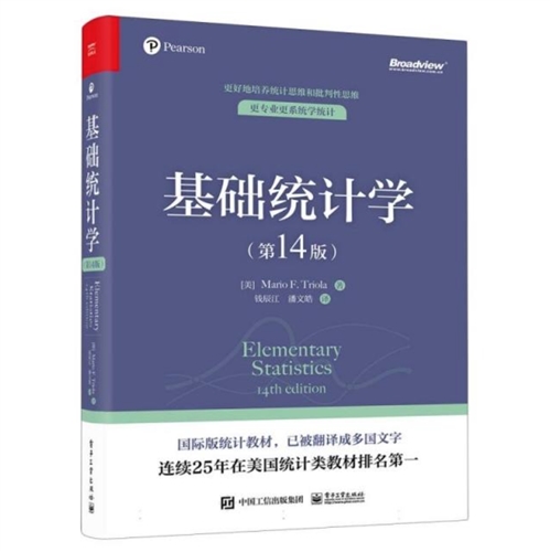 《基础统计学》历经14 版,经久不衰。该书已经作为国际版统计教材被翻译成多国文字,连续25 年在美国统计类教材中排名第一。本书以浅显易懂的文字以及贴近实际的案例,带领读者专业系统地学习统计思维和批判性思维,领略统计学的真实魅力。本书的第1~3 章着重介绍描述统计学,通过第4~6 章的概率分布逐渐过渡到第7~9 章的推断统计学;第10~15 章介绍了现代统计学中一些重要的实践方法,例如回归分析、拟合优度、方差分析、非参数检验等,读者可以根据自身的兴趣与背景学习相关内容。