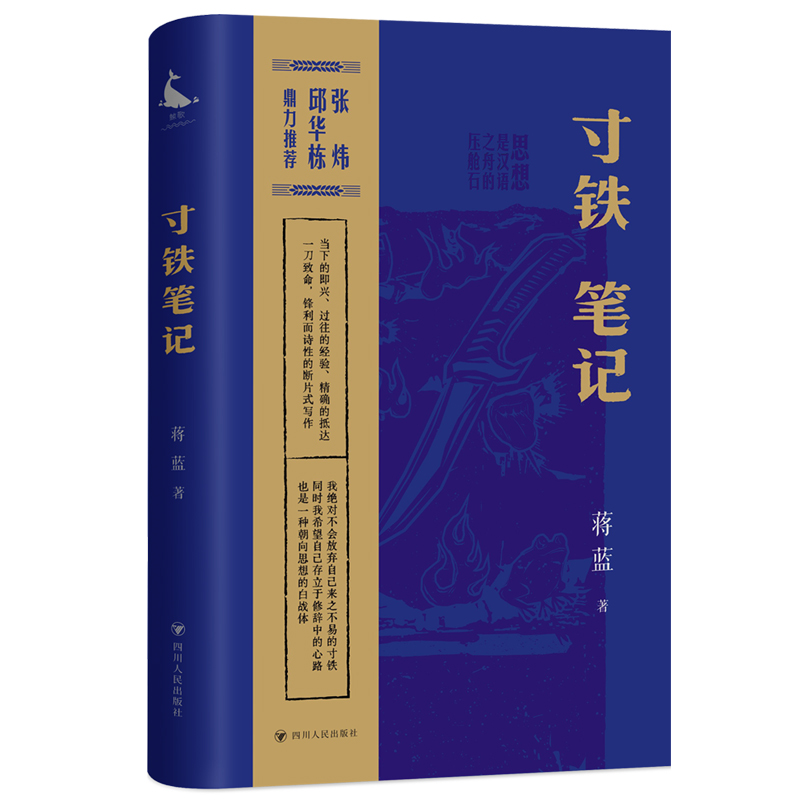 《寸铁笔记》是四川zhuming作家蒋蓝近十多年来有意为之的“断片写作”的汇编,收录其思想随笔、读书笔记一百来篇,并按主题将全书分为“思的寸铁”“火与蛙”“箍桶匠与厚黑学”“话语的舌头”四辑。这四辑随笔贯穿了作者蒋蓝多年来对客观世界的深度思考,涵盖了历史、社会、自然、人生、中外文化等方面随想随感,其文广博深远,其言铿锵有力。