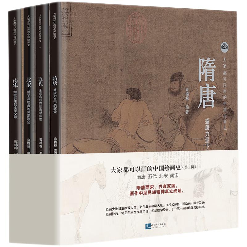大家都可以画的中国绘画史 ( 第二辑 )包含隋唐、五代、北宋、南宋四个时期的代表性绘画作品,涉及绘画史论、作品解读。“大家都可以画”部分,其意义不止在于习画,也是对富有鲜明时代精神的艺术品深入体悟的过程,是美感的滋养,是沉静的修炼。绘画工具选用铅笔,内容循序渐进,其目的正是为实现大家都可以画,无论有无美术基础、无论年幼及长。隋唐两宋,兴衰家国,画作中见民族精神卓立绵延。
