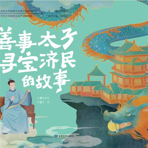 《善事太子寻宝济民的故事》是一本以敦煌壁画为素材创作的绘本,是"青少年敦煌文化科普绘本"丛书之一。创作蓝本取材于莫高窟第296窟的北周壁画"善事太子本生故事",全书以细腻的笔触、优美的配色和有趣的文字,描绘了宽厚善良的善事太子,为救百姓历尽艰险从海上求来宝珠的事迹。在故事之后,作者又用通俗易懂的文字,详细地讲解了绘本中人物形象的来源、纹样设计和色彩选择的依据等问题,让读者在阅读和欣赏绘本故事的同时,学习敦煌艺术相关的知识,了解敦煌壁画的历史和艺术价值。