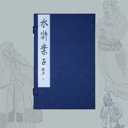 本书是王贵忱先生旧藏明本《陈老莲水浒叶子》的雕版复刻本,由徐麟、王浩之编,宋保旺雕版。原书的长篇序文漫漶不清,依乾隆五十九年(1794)《陶庵梦忆》刻本中的《水浒传》勘误重刻;正文四十位水浒人物与原书一致,残缺部分依国家图书馆本补;扉页由鞠稚儒镌王先生篆题“陈老莲画水浒叶子”。此次雕刻,还将王贵忱先生手书的《陈老莲水浒叶子》跋文改为明版印刷字体,雕版印刷,版框尺寸、行款与原书序文一致。是对传统雕版术复刻的一次尝试。