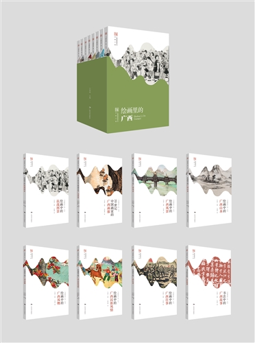 本套丛书共八册:绘画中的广西风物、绘画中的广西往事、绘画中的广西风景、绘画中的广西山水、绘画中的抗战图景、绘画中的广西民族风情、20世纪中国画家的广西画旅、书法篆刻中的广西故事。