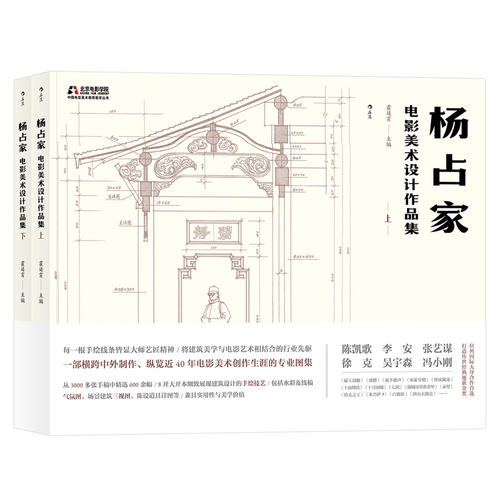 本书是对著名电影美术师杨占家先生设计作品的精编汇总,全书分为上下两册,从三千多张保存完好的手绘图稿中精选六百余幅,涉及影片四十七部,其中不乏多部影史经典,如《霸王别姬》《夜半歌声》《大闹天宫》《卧虎藏龙》《十面埋伏》《七剑》《十月围城》《满城尽带黄金甲》《赤壁》《唐山大地震》等。这些图稿既有传统建筑学三视图,又有细部结构设计详图,制图严谨,更传递出了独特的建筑艺术美感。此外,还收录了三篇采访稿及一篇创作阐述,其中既有资深美术师对杨占家先生创作思路的解读,又有杨先生对美术创作技巧的独到讲解。