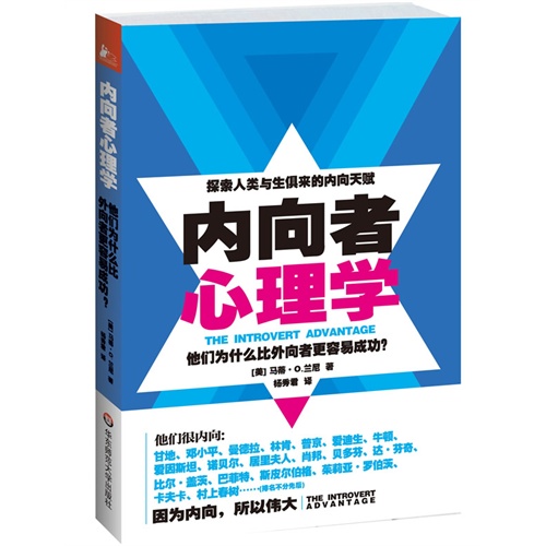 马蒂 O.兰尼,美国心理学博士,教育学家,作家,演讲家,心理临床医师。美国当前最重要的内向个性研究权威专家,在美国及其他国家举办过多次演讲与专题讨论会,录制过200多个电台和电视节目。本书出版后受到业内人士及读者的一致好评,被翻译成15种语言。她擅长以其精神分析的专业,探索内向性格的议题,并以谘商对象及自己与外向性格丈夫的相处作为范例,多方研究内向者在外向社会中的生存模式与发展优势。