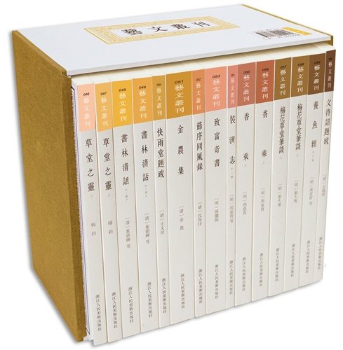 《艺文丛刊》品种版本考究,内容雅正,笔调闲适,点校规范,是学习古代文化知识,传承中国人文精神的理想读物。丛书形式玲珑雅致,繁体竖排,分辑推出,每册编号,藏读两宜。“艺文丛刊”系列是浙江人民美术出版社继“中国艺术文献丛刊”“艺文志”书系之后,又一套定位在历代人文艺术生活的丛书。