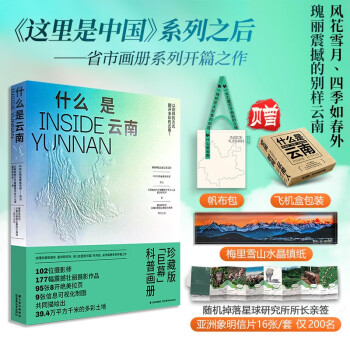 《什么是云南》是星球研究所继《这里是中国》系列后,推出的省市系列画册开篇之作,全书以精选了177幅高清摄影作品,制作了9张地理信息可视化制图,以大幅开本和拉页呈现出云南地理风貌的多样性,给读者带来巨大的视角享受。图书设计新颖,全书折页与拉页呼应内容的时空折叠叙述角度,以别样的方式展现多彩云南。书中还配有10段来自云岭大地的白噪音,读者可立体、全方位享受云岭大地之美。因而,这是不仅是一本可看、可听的画册,还是一份值得珍藏的美好。