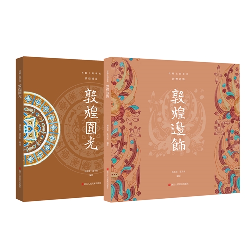 敦煌圆光和敦煌边饰是敦煌图案的重要组成部分。《敦煌圆光》《敦煌边饰》是敦煌历代圆光、边饰复原图案专集,收录了敦煌各个历史时期圆光、边饰图案。作者耗资百万,经三十余年的艰苦努力,将敦煌壁画中变色与剥落残损的部分尽力复原,力图还其原创时代的真实面貌。