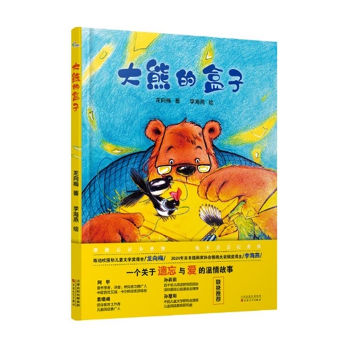 大熊越来越老了,他的记忆盒子越来越小,很多事,他一转身就忘了。昨天说过的话,做过的事,很快忘了。最近看过的书,去过的地方,也忘了。可是,记忆的盒子还在变小。他忘掉了最爱的榛子饼的制作方法,忘掉了草帽的编织方法,忘掉了朋友,忘掉了自己的生日和年龄,忘掉了回家的路。现在,他的记忆盒子几乎空了。他还能记得什么呢?