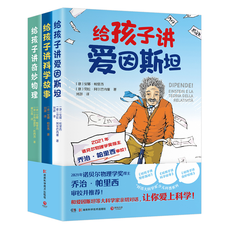 “对话大科学家”少儿科普套装包含《给孩子讲爱因斯坦》《给孩子讲科学故事》《给孩子讲奇妙物理》 3本书。