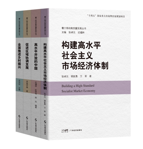 丛书分为“构建高水平社会主义市场经济体制”“全面推进乡村振兴”“促进区域协调发展”“推进高水平对外开放”等方面,为读者提供了理解高质量发展的特征、内涵和实现路径的新视角,阐述了结构转型在推动高质量发展中的核心作用。丛书入选了“十四五”国家重点出版物出版规划项目。丛书的编撰团队由各自领域颇有建树的知名专家学者组成,他们结合对全面建设社会主义现代化国家所展现的中国道路和中国经验的深入分析,提出了许多独到且新颖的理论观点,将中国实践和中国理论的自信与自豪转化为具体的学理分析和学术成果,使得这套丛书兼具权威性、针对性和前瞻性。其中,张卓元领衔撰写《构建高水平社会主义市场经济体制》。本书以经济体制改革为主线,回顾了我国社会主义基本经济制度建立的过程,从我国坚持社会主义市场经济改革并不断完善相关制度入手,分章节介绍国企改革、优化市场环境、完善企业制度、夯实法治基础、构建统一大市场等具体举措,为总结和探索我国社会主义市场经济体制提供重要理论依据。迟福林领衔撰写《高水平开放的中国》。本书从面对百年未有之大变局这个特定背景出发,提出作为新型开放大国,我们要以开放统筹国内国际两个大局,以打造高水平对外开放新高地为重要突破,以制度型开放为突出特点,以构建高水平社会主义市场经济体制为重要保障,形成自身全面深化改革的新动力,有利于我国以高水平推动高质量发展,建设开放型世界经济,共赢新时代。肖金成领衔撰写《促进区域协调发展》。本书梳理了区域协调发展理论和战略的形成过程,总结了取得的成效以及存在的问题,有针对性地提出了建立有效的区域协调发展体制机制的对策和建议,以期为推动区域协调发展向更高水平和更高质量迈进贡献智慧和力量。宋洪远主编《全面推进乡村振兴》。本书紧扣全面推进乡村振兴这一主题,以保障粮食和重要农产品供给安全和促进农民收入增加为根本要求,以推动乡村产业振兴、人才振兴、文化振兴、生态振兴、组织振兴为重点任务,以扎实推进乡村建设、全面深化农村改革、促进城乡融合发展为重要举措,系统阐述全面推进乡村振兴的实现路径和主要措施,为全面推进乡村振兴和实现高质量发展提供了理论支撑和行动指南。