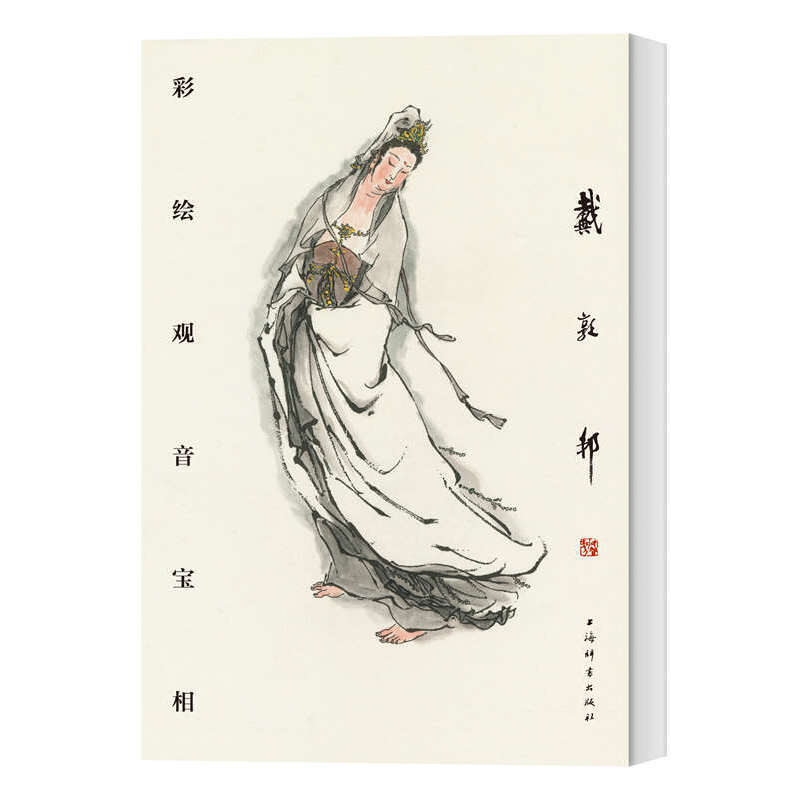 在中国传统绘画中,观音宝相是深受民间大众喜爱的艺术表现形式。2001年,有“民间艺人”之称的著名国画家戴敦邦先生,为家乡镇江西津渡观音洞碑廓恭作观音三十二宝相勒石稿,慈容庄严,仪态万方。又二十四载,戴老以镌刻于观音洞碑廓的白描墨稿为底,彩绘赋色,为此珍贵作品更增艺术华彩。上海辞书出版社特以宣纸册页装帧出版,典雅华美,弥足珍藏。